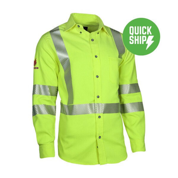 This DRIFIRE flame resistant high visibility work shirtprovides the protection you need with the professional appearance you want. 2” FR silver reflective trim around the chest and biceps ensures 360° ANSI/ISEA 107-2010 Class 3 visibility. A button closure front and button closure lined cuffs gives this shirt a sharp look. Constructed of breathable, lightweight material and designed with a non-restricting cut, you'll experience ultimate comfort on the job in this work shirt!