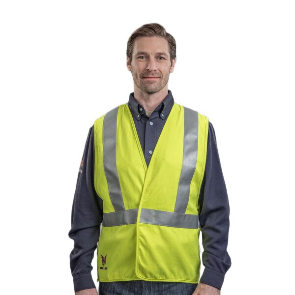This inherently flame resistant hi-vis safety vest meets ANSI/ISEA 107 Type R, Class 2 standards and features FR reflective trim for added visibility. It is constructed of breathable yet durable Westex DH material that is dual certified NFPA 70E and NFPA 2112 compliant, offering you CAT level 2 protection. This vest will keep you safe and seen while on the job site!