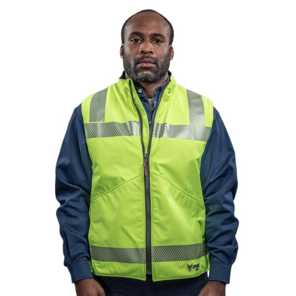 DRIFIRE guarantees to provide you with visibility, warmth and protection all in this one vest! The DRIFIRE Hi-Vis FR Fleece Lined Vest boasts an impressive CAT 3, 30 cal/cm² arc rating and is ANSI 107- Type R, Class 2 compliant. Thanks to it's water repellent and wind resistant material and FR reflective trim, you are sure to stay visible and comfortable through any weather conditions!