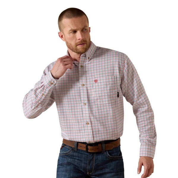 This button down work shirt provides all day comfort and will make you look like a true professional! The FR Gauge Work Shirt from Ariat features Greater Arm Mobility Technology that improves range of motion, an extended shirt tail that stays tucked in, and cuffs that won't ride up when reaching. It guarantees CAT 2 protection and is dual certified NFPA 70E and NFPA 2112 compliant. Built for tough work, but designed to fit great, these work shirts from Ariat will keep you cool and dry in even the most hazardous work environments!